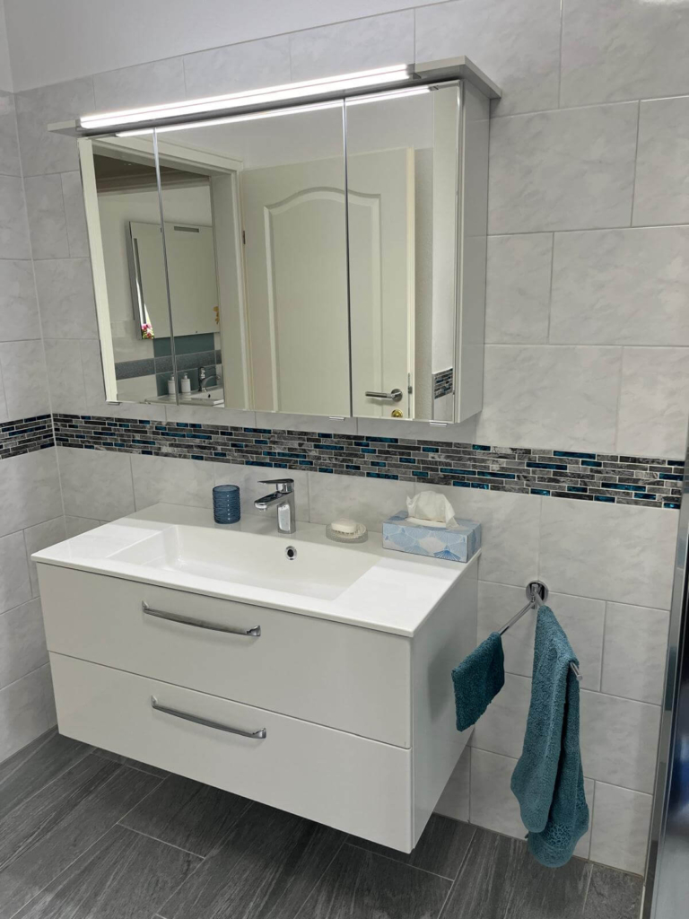 Für dieses Projekt realisierte EMA Installationen eine komplette Badezimmersanierung, die Komfort und Sicherheit vereint. Der Wunsch des Kunden war ein altersgerechter Badumbau, der optisch keine Wünsche offen lässt.