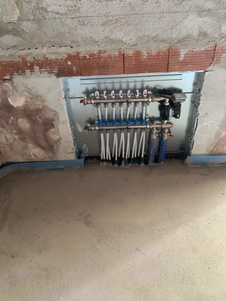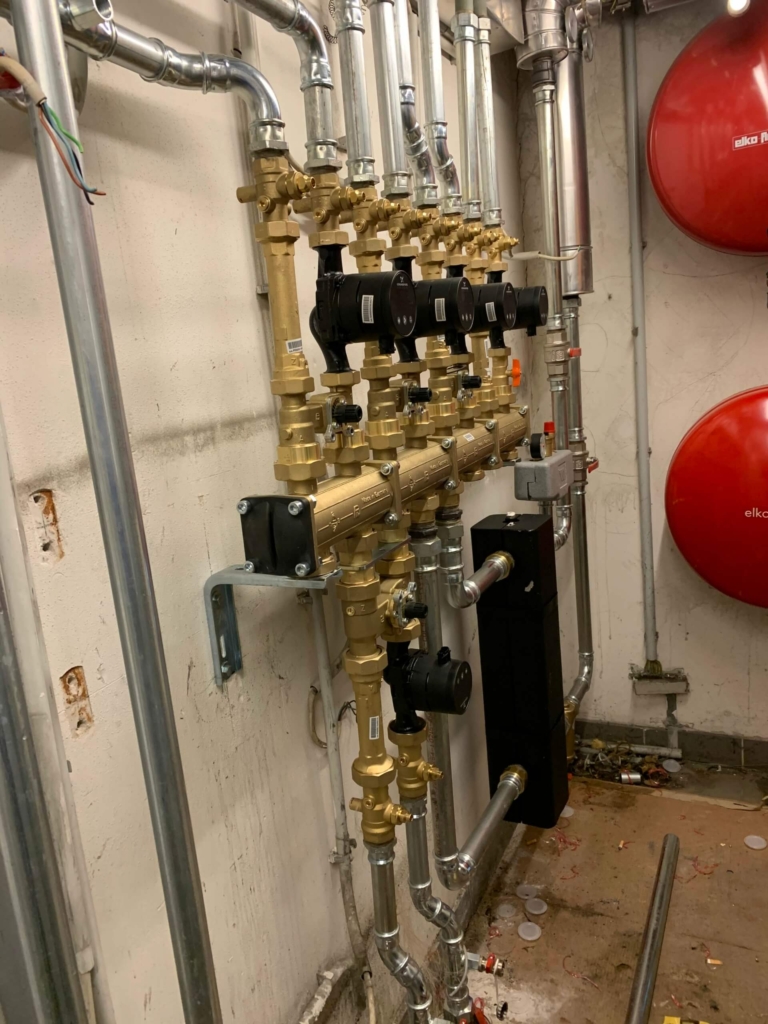 Die Installation wurde mit besonderem Augenmerk auf die perfekte hydraulische Einbindung durchgeführt. Die sauber montierten Pumpengruppen sorgen für eine effiziente Wärmeverteilung im ganzen Haus.